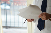 司法書士により銀行で登記書類を確認します。